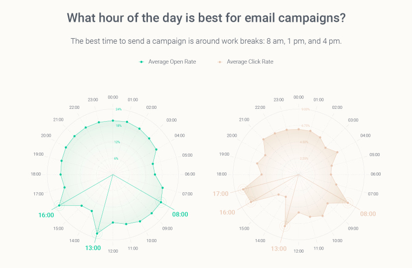 Of course, different studies give different results on the best time to send out e-mails. Another research concluded that work breaks at 8am, 1pm and 4pm are the best.